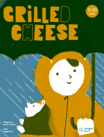Docu-fiction pour les enfants à partir de 5 ans, illustrée par Yann Bastard, publiée dans le magazine bilingue pour enfants Grilled Cheese Mag, numéro spécial « Tempête » (février 2019, Montréal)